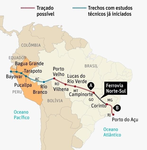 Após a visita da comitiva presidencial de Luiz Inácio Lula da Silva (PT) que culminou em acordos econômicos bilionários em favor do Brasil, o presidente da República Socialista da China, Xi Jinping, confirmou que fará a Ferrovia Transoceânica, ligando o Porto do Açu, no Rio de Janeiro, com a costa do Peru, em Bayovar. A confirmação foi dada na última sexta-feira (16) pela presidente do Novo Banco de Desenvolvimento (NBD), Dilma Roussef,que teve agenda com o líder chinês logo após o encontro Brasil-China.