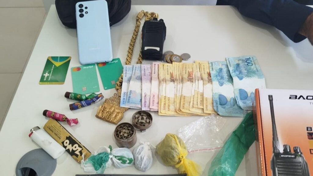 Além das substâncias ilícitas e do dinheiro, também foram localizados documentos pessoais, uma mochila com pertences e um rádio comunicador da marca Baofeng. Todos os itens foram devidamente apreendidos e registrados como parte da ocorrência, reforçando os indícios de comercialização de drogas.