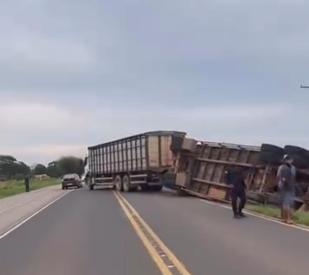 Apesar do susto, ninguém ficou ferido no acidente. O tombamento acabou bloqueando parcialmente a rodovia, causando lentidão no tráfego por alguns minutos